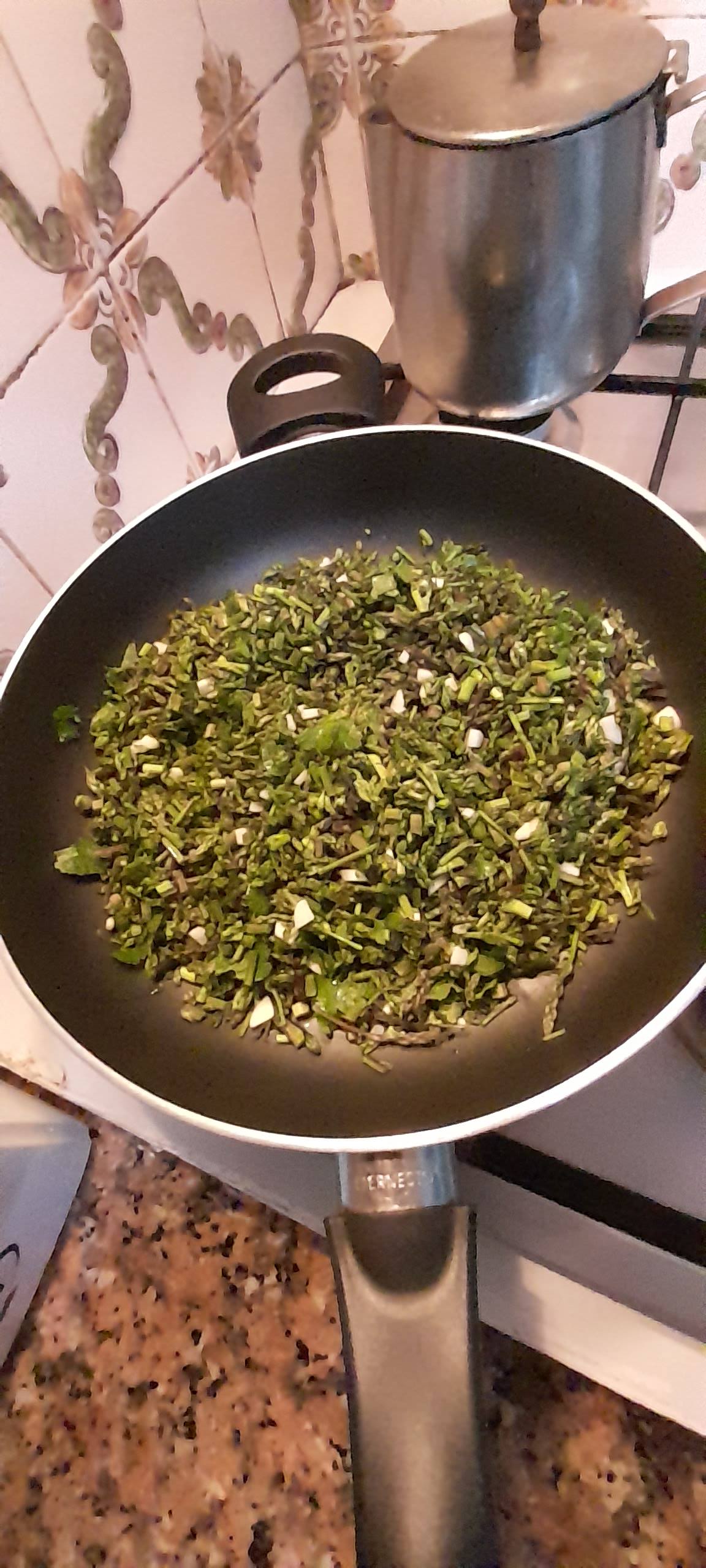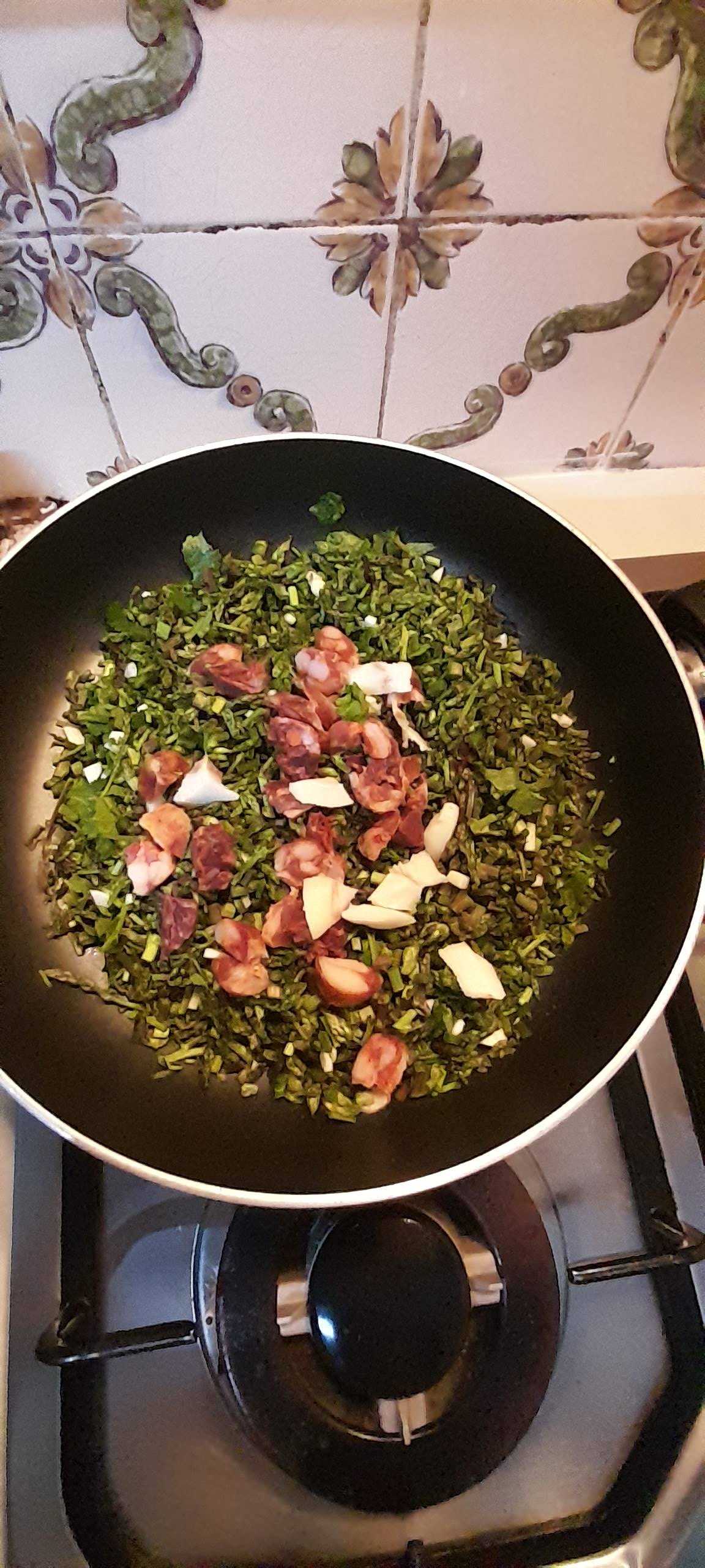 2️⃣ Junta o alho picado.