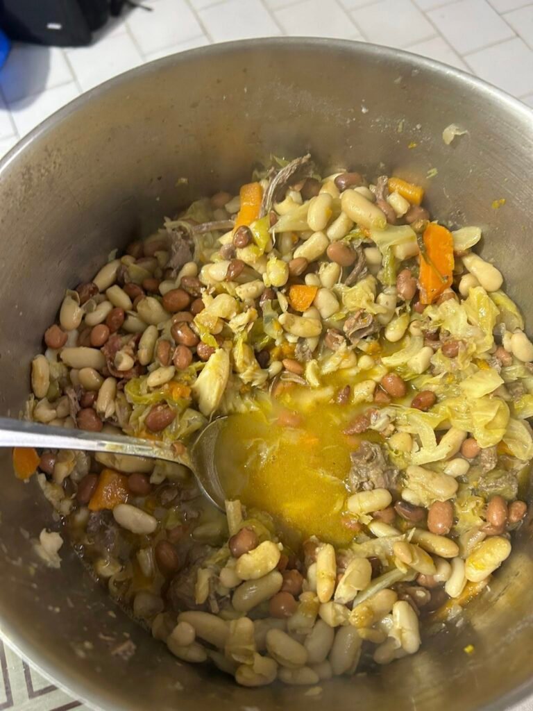 (Como nas tuas imagens: caldo claro, feijão inteiro, couve macia e carne bem marcada.)