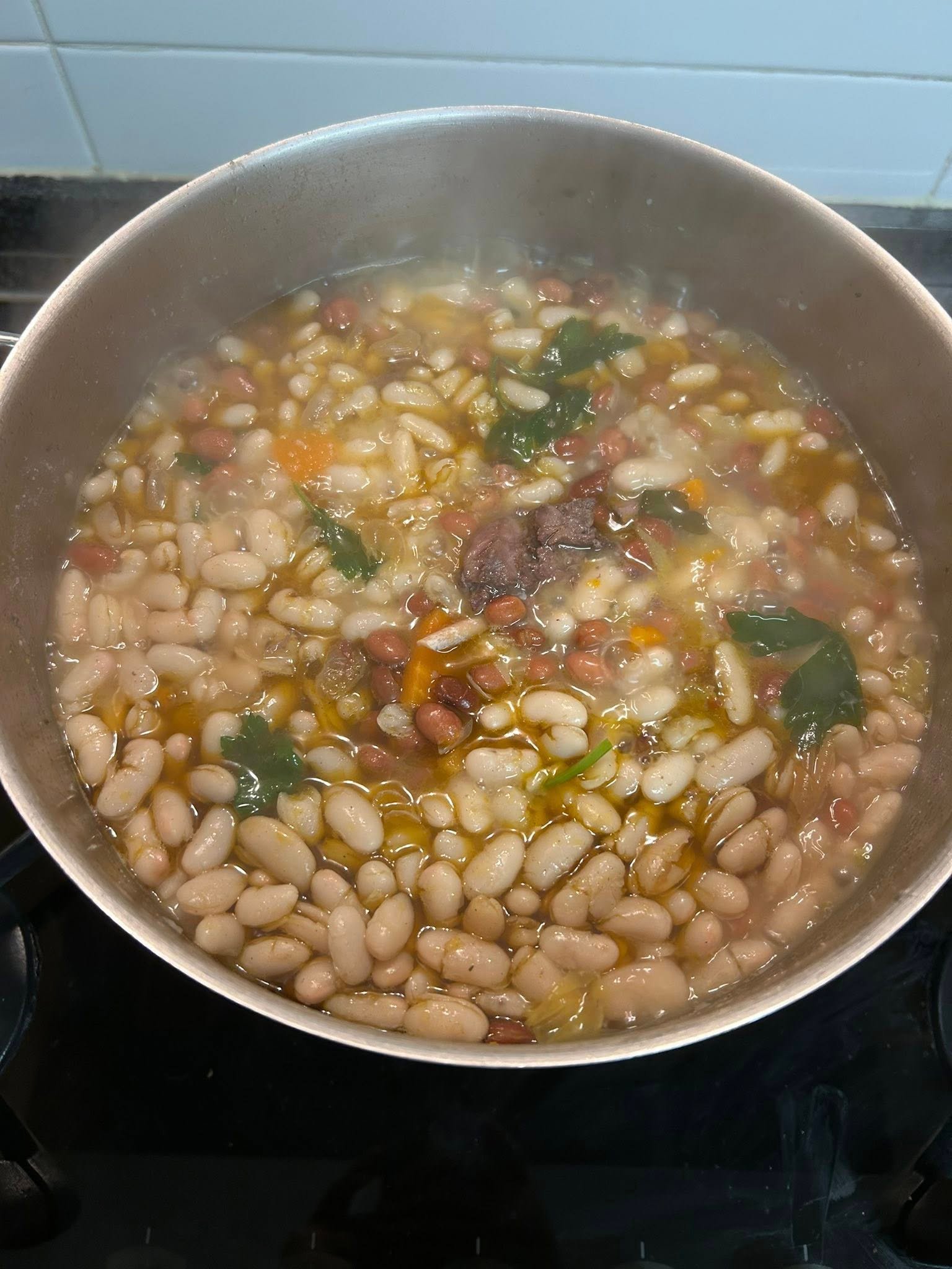 (Como nas tuas imagens: caldo claro, feijão inteiro, couve macia e carne bem marcada.)
